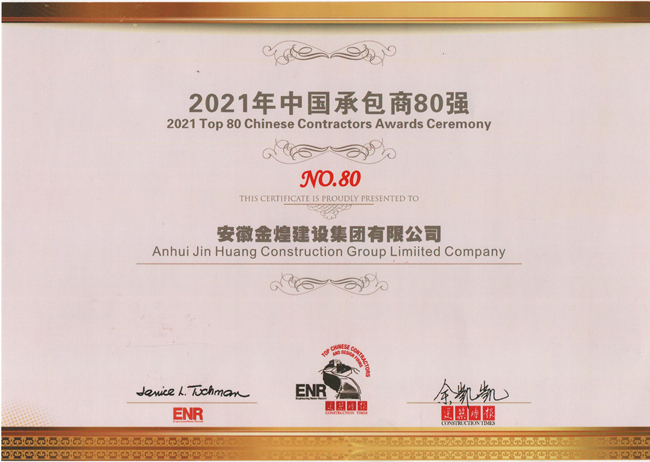 6月23日,美国《工程新闻记录》(ENR)和中国《建筑时报》共同发布2021年度“中国承包商80强和工程设计企业60强”排名。安徽金煌建设集团有限公司继续入围中国承包商80强,这也是金煌集团连续七年获此殊荣。以不凡业绩,充分凸显了民营建筑业企业的担当与实力。