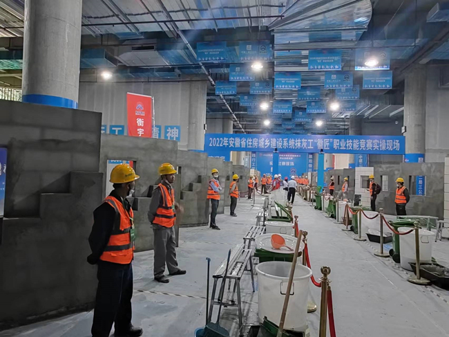 9月24日—9月25日,2022年安徽省住房城乡建设系统抹灰工“徽匠”职业技能竞赛如期进行。我公司积极组织挑选精兵强将,成立了以公司总工程师为领队的参赛队,进行了理论和实操两方面系统培训。竞赛过程中参赛选手和教练密切配合,举手投足间流露出专业和自信,最终经过激烈角逐取得佳绩。通过此次活动,充分体现了金煌人追求卓越的工匠精神,展示了集团专业技能人才储备的多样性。