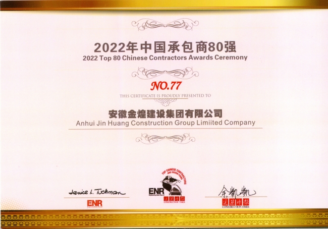 11月27日,由《建筑时报》和美国《工程新闻记录》(ENR)合作举办的2022ENR/建筑时报“中国承包商80强和工程设计企业60强”颁奖典礼在广西南宁举行。金煌集团再创佳绩,再登榜单,继续入围“中国承包商80强”,列居77位。