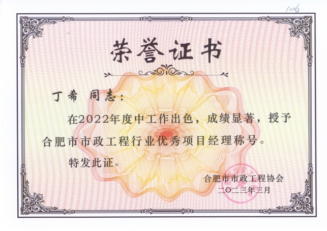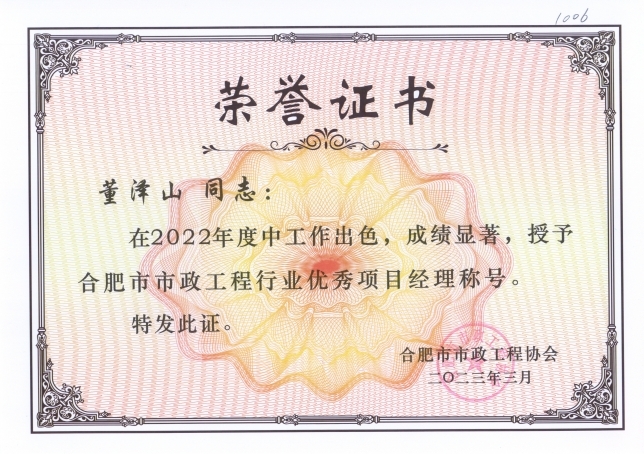 五月初夏闻喜讯,八方佳音似春风。金煌集团秉承“诚信、务实、开拓、创新”的核心价值观,一路追求卓越,频传喜讯。近日,从安徽省市政工程协会和合肥市市政工程协会获悉,金煌集团荣获2022年度安徽省优秀市政企业和合肥市优秀市政企业称号,董泽山、丁希两位同志荣获安徽省优秀市政项目经理称号和合肥市市政优秀项目经理称号。这一成绩的取得离不开行业主管单位和省市各专业协会的鼓励、指导以及大力支持,并为金煌集团营造了良好的经营发展环境。
