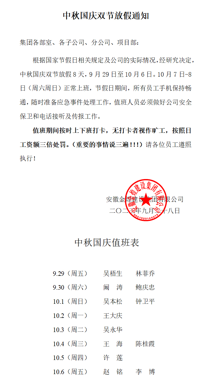 2023年度中秋国庆双节放假通知